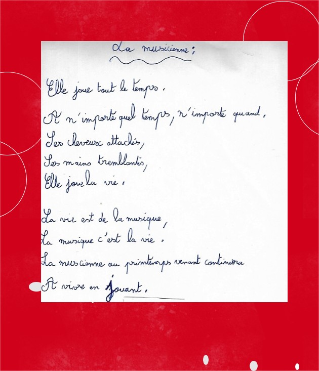 Aujourd’hui 2 élèves vous proposent quelques poèmes: Musicienne, Ma rose, Immortelle et Voici l’île de la Réunion.
