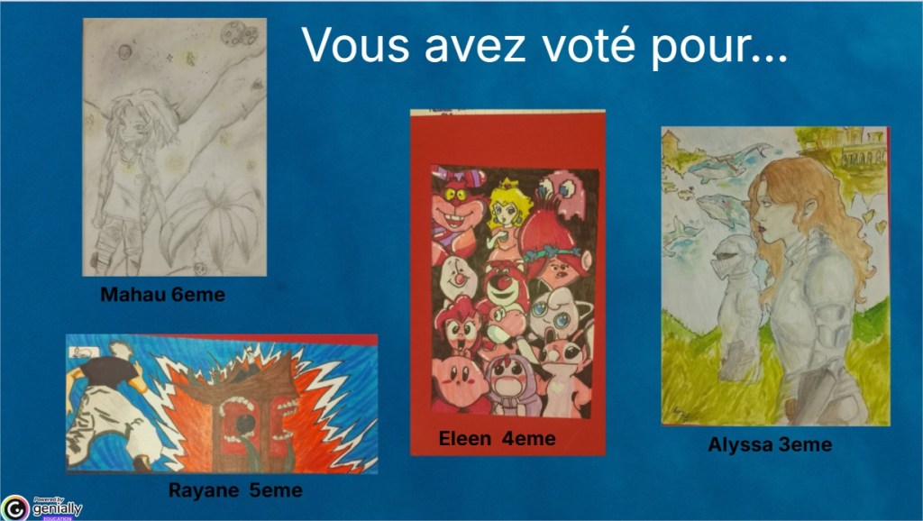Bravo à tous les participants Découvrez ci-dessous les dessins sélectionnés.